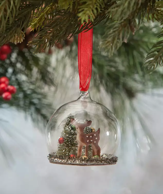 Add a traditional touch to your Christmas tree with this darling little Christmas Deer in Glass Globe Ornament.