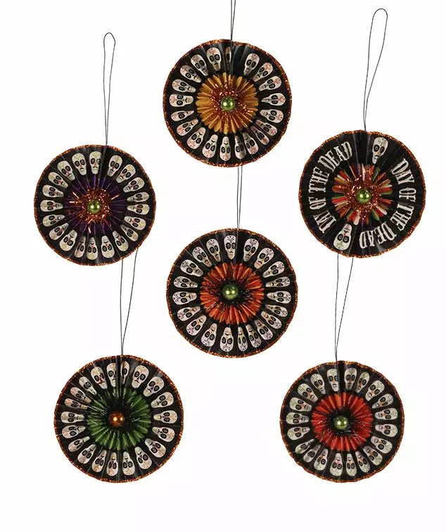 Let the festivities begin! Get your abode party-ready with these amusing Day of the Dead Rosette Ornaments.