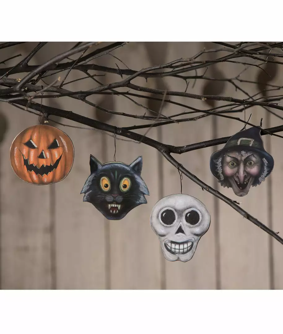 Create a chilling Halloween effect; hang these ghoulish ornaments on a spooky arrangement of branches or a Halloween tree.