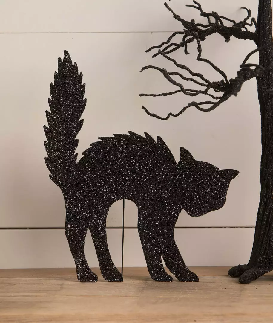 Give your Halloween decorating classic appeal with this glittered black Scaredy Cat Silhouette.
