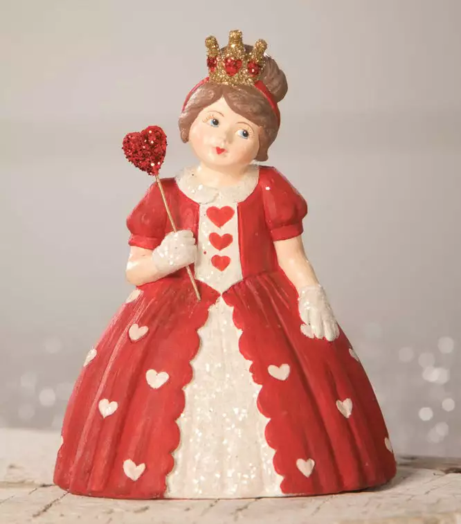 Show your love this Valentine’s Day with this darling little Queen of Hearts girl by Bethany Lowe designs.