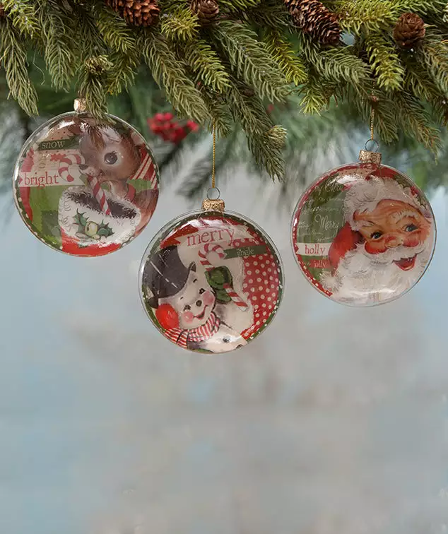 Add festive touch to your Christmas decorating with these nostalgic glass disc ornaments.