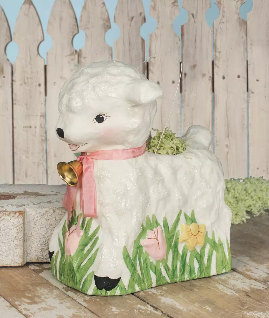Give your Easter decorating a sweet vintage-inspired touch with this paper mache Retro Lamb Bucket.