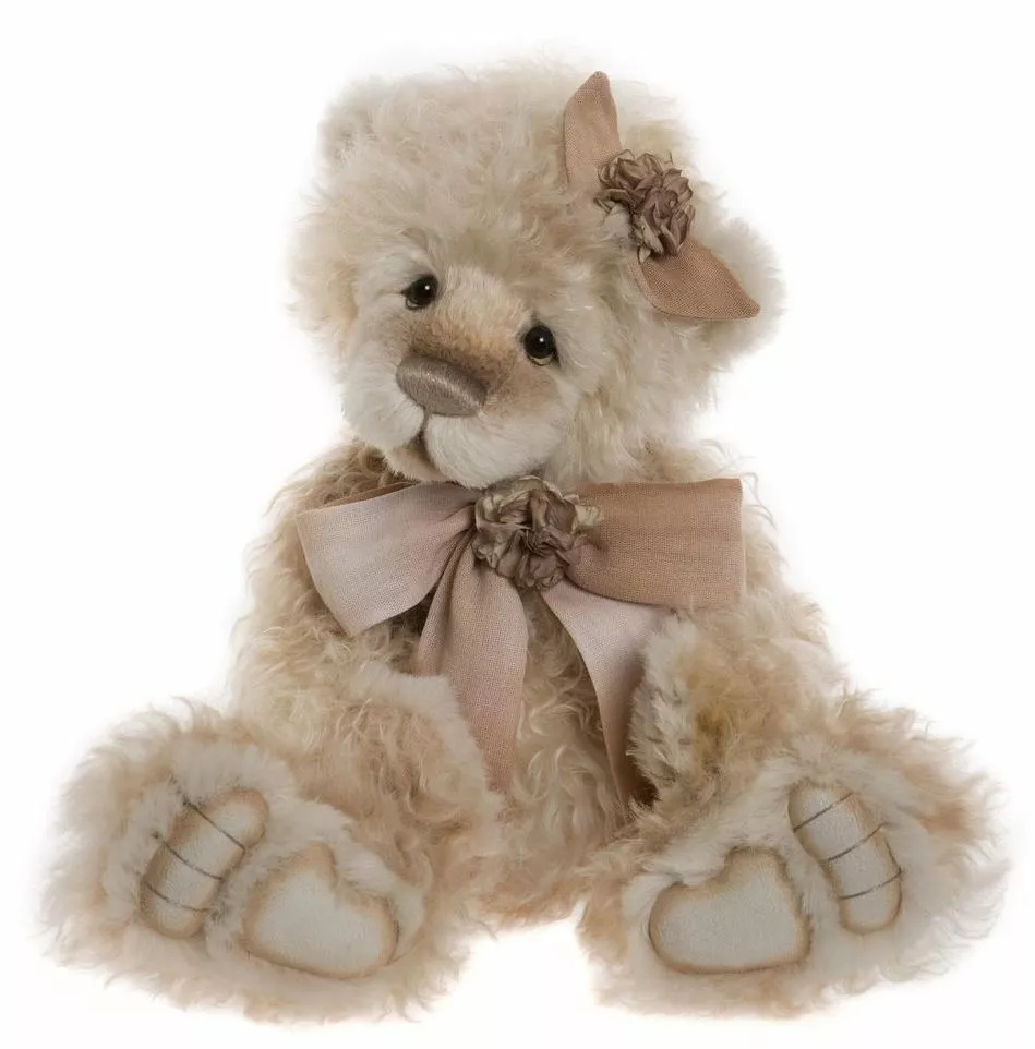 Arabella is a darling mohair and alpaca bear co-designed by teddy bear artist Isabelle Lee for Charlie Bears.