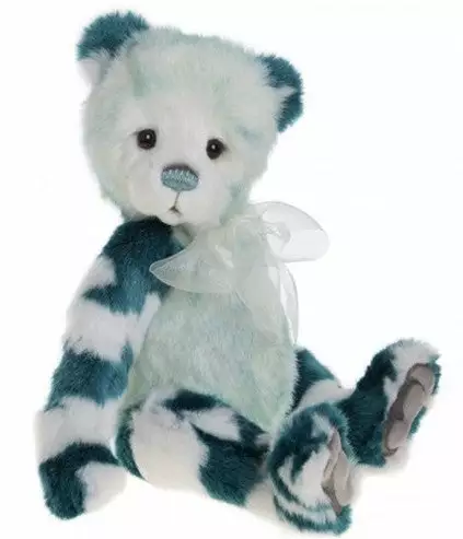 Send them smiles with this unique blue and white teddy bear by Charlie Bears.