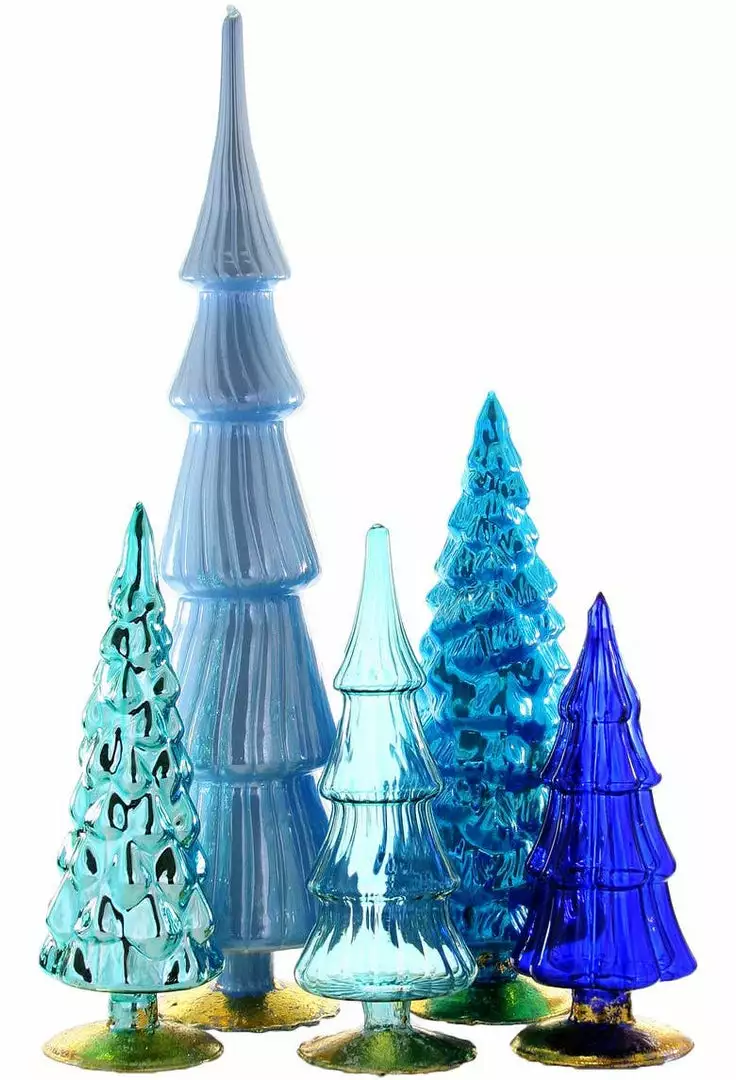 Give your holiday decorating designer style with these stylish Blue Candy Glass Trees in varying hues, shapes and sizes.