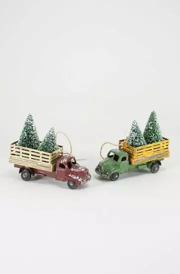 Hang these adorable vintage style trucks with trees from your Christmas tree or prop in a Christmas village or train scene.