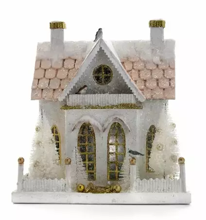 Create a serene winter scene with this lovely Winter Cottage Putz House.