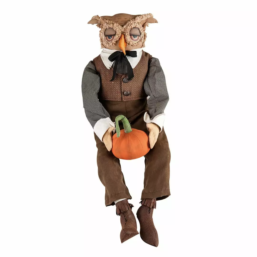 Tobias will be in his snappy brown tone pants, vest and check shirt outfit. Finishing it out with his black square dance western style bow tie. Tobias owl is bringing a cloth pumpkin hostess gift to the barn square dance, what a gentleman!