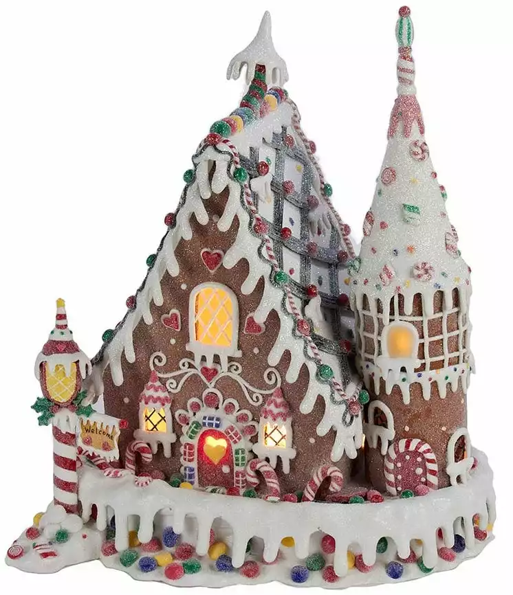 Make their dreams come true this holiday season with this decadently decorated Gingerbread Candy Shoppe that illuminates merriment.