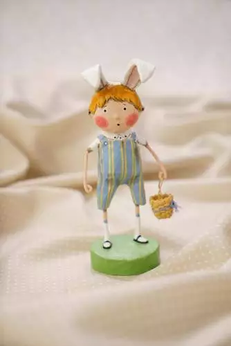 A sweet little boy with bunny rabbit ears can’t wait to get his Easter basket full of Easter eggs, candy and treats.