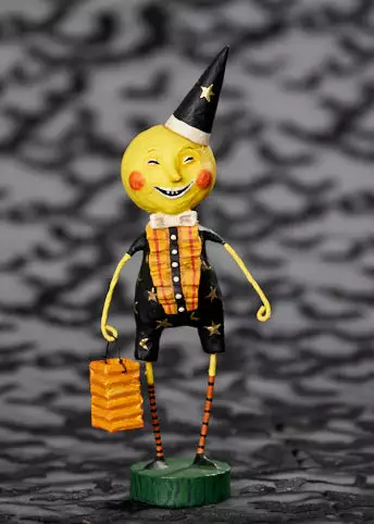 Bring whimsy to your Halloween decor with this Man in the Moon figurine designed by artist Lori Mitchell.