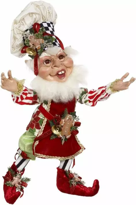 Let the Christmas Cookie Fest begin with the Cookie Maker Elf from artist Mark Roberts! This charming elf is decorated with cookie adornments and candy cane striped sleeves!