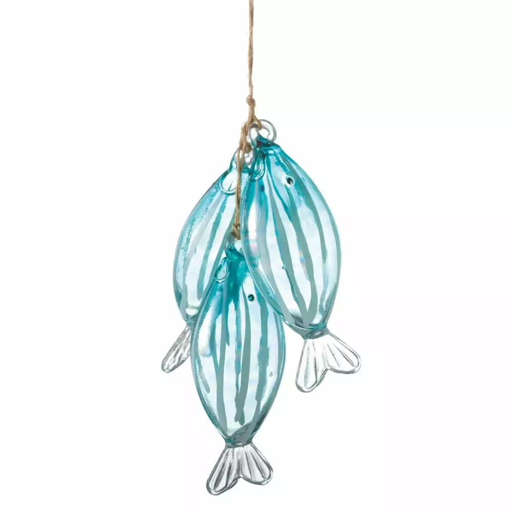 Add a coastal feel to your Christmas decorations with this Blue Fish Stringer Ornament.