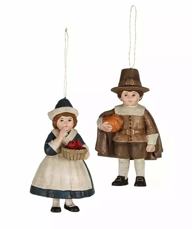 Prepare for the Harvest with these two darling Thanksgiving Children Ornaments designed by artist by Bethany Lowe.