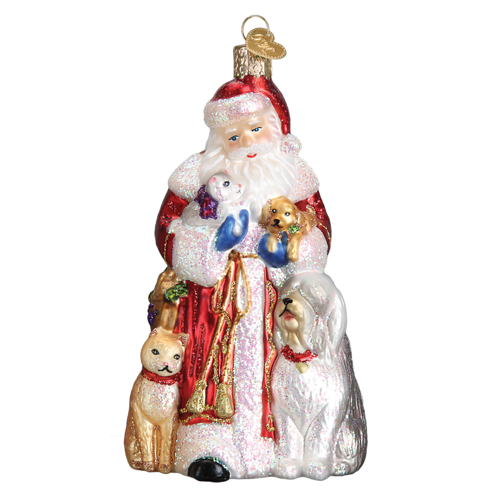 - 5.5″ Glass Santa’s Furry Friends Ornament