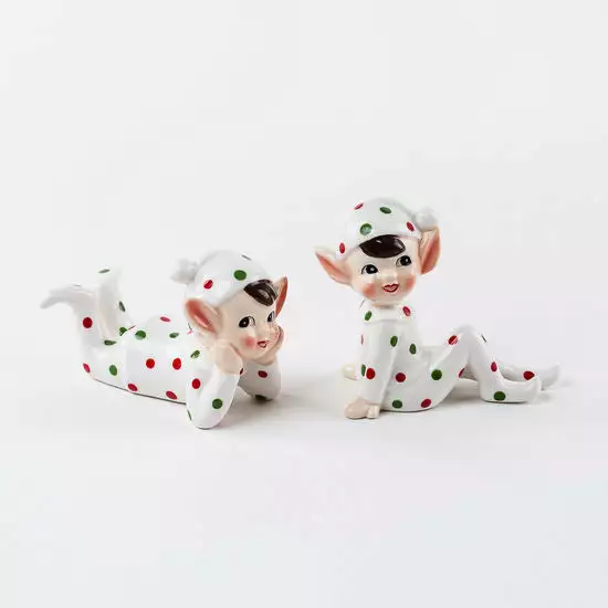 Be the first to review “One Hundred 80 Degrees Elves In Polka Dot Pajamas, Ceramic Figurines” Cancel reply