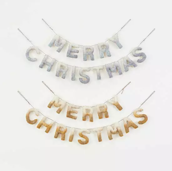 Create a cozy atmosphere with this stylish Felt Merry Christmas Banner. Choose from Gold Ombre or Silver Ombre.