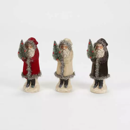 Add vintage charm to your Christmas decorating with these vintage-inspired Flocked Belsnickel in your choice of red, cream or black.