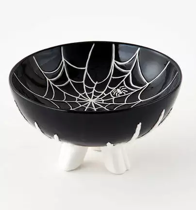 Treat your Halloween guests to a sweet surprise with this spooktacular Spiderweb Treat Bowl with Skeleton Hands.