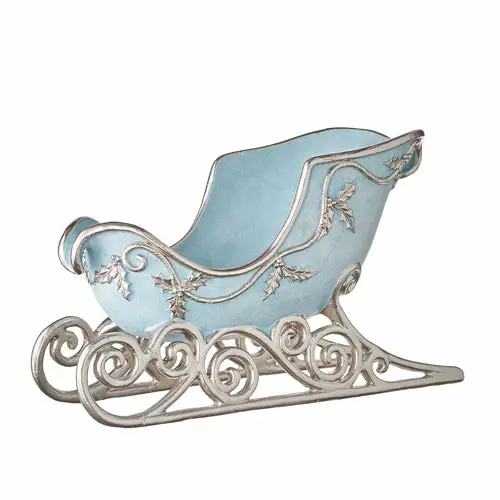 Give your Christmas decor designer appeal with this Elegant Blue and Silver Sleigh.