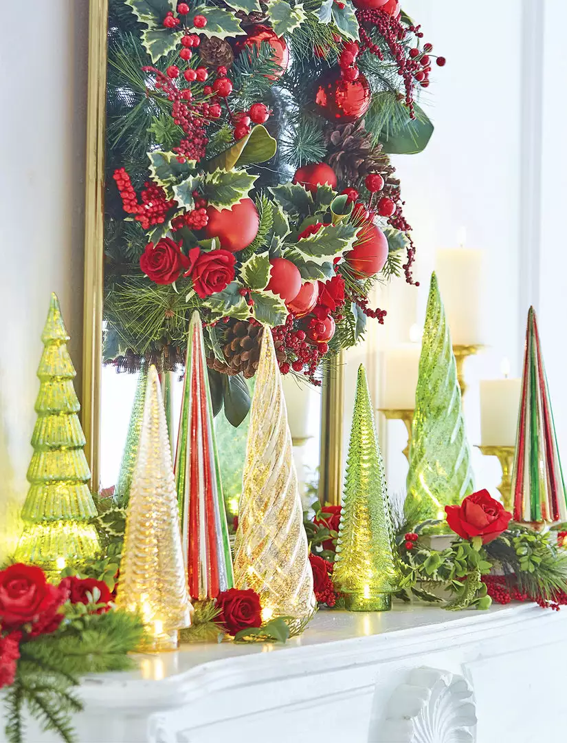 Give your Christmas decor a designer look with these Gold, Red and Green Ribbed Trees.