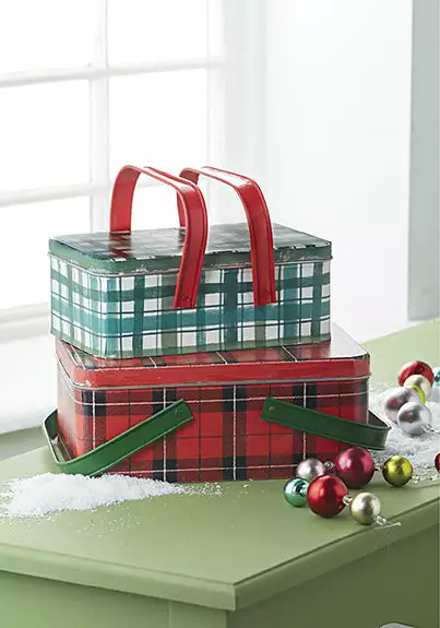 Bring nostalgia to your Christmas decorating with these vintage inspired Plaid Picnic Tins.