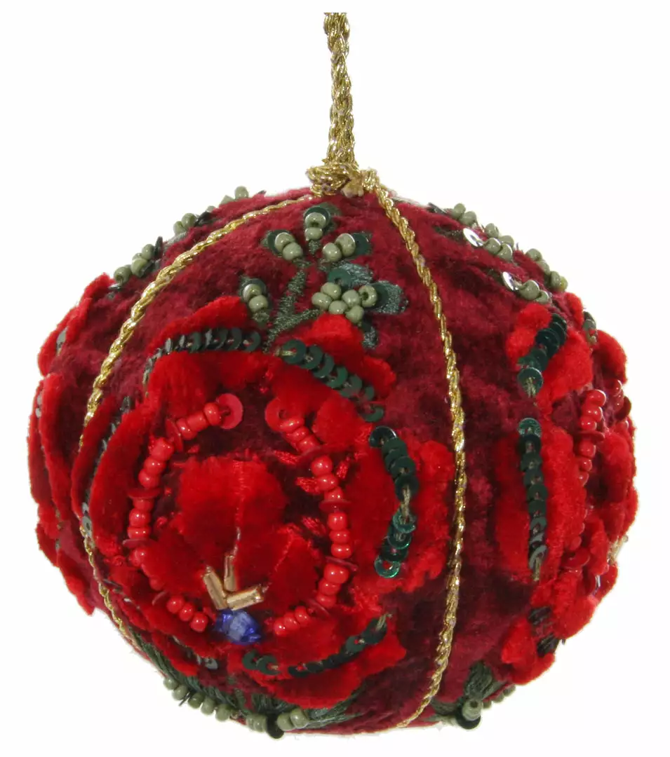 Bring an elegant feel to you Christmas decorating with this highly detailed red Victorian Velvet Rose Ball Ornament.