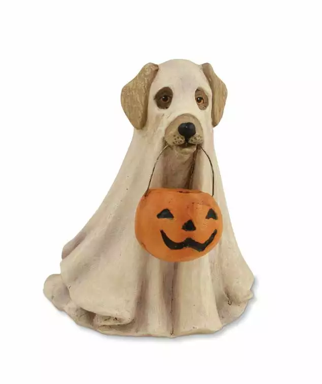 Doggie gets in on the Halloween act. Sniffing out all your dog treats to fill his pumpkin jack-o-lantern bucket. WOOF, WOOF!