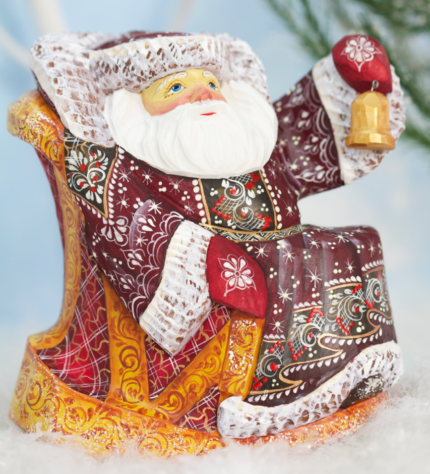 Hand carved, hand painted Santa in Rocking Chair. This painstakingly detailed, carved and painted wooden heirloom Santa in Rocking Chair will add an Old World European feel to your Christmas decorations.