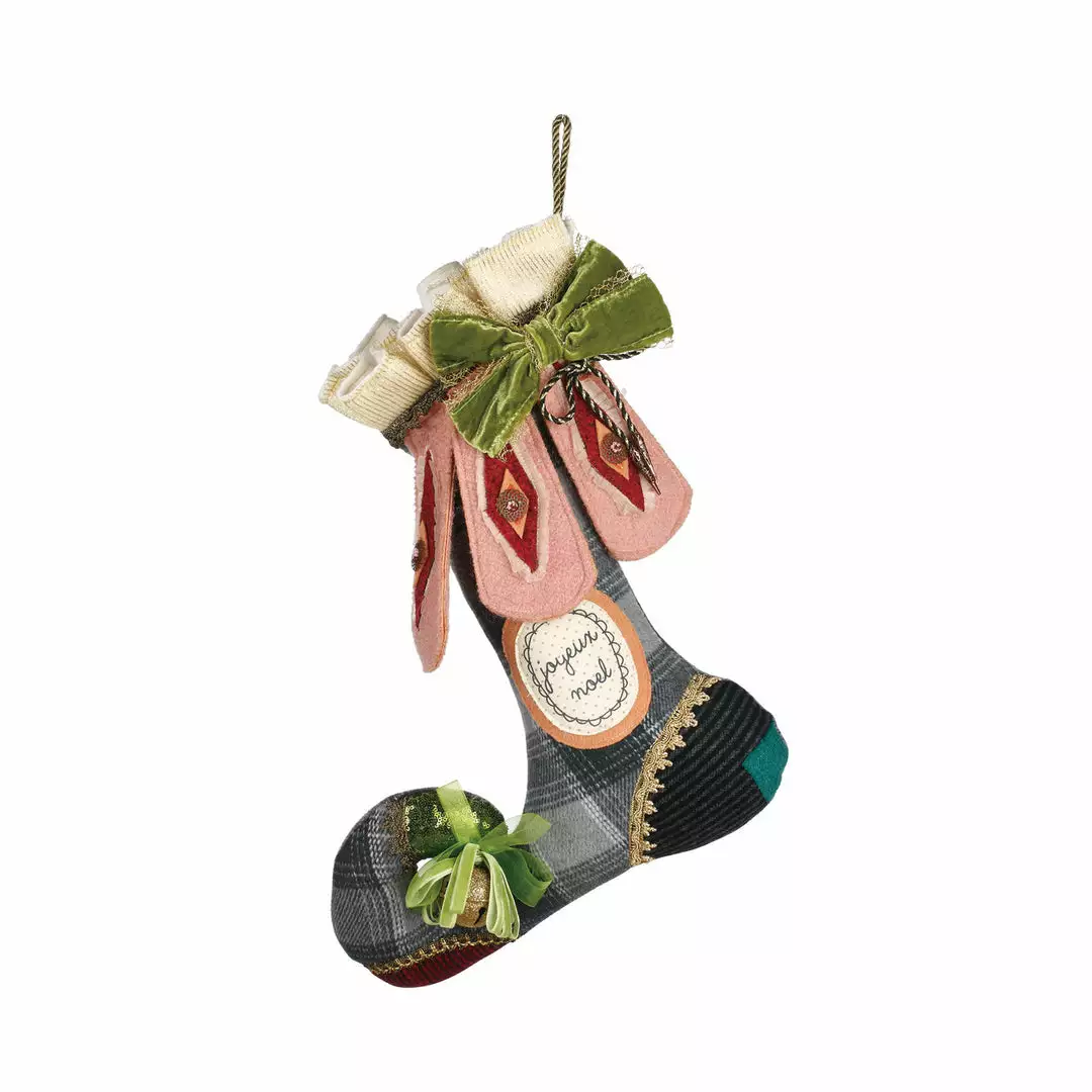 Bring holiday cheer with a touch of whimsy to your mantel, sofa, or chair with this unique Charlotte Stocking Accent Pillow lavishly designed with chic textiles and embellishments.