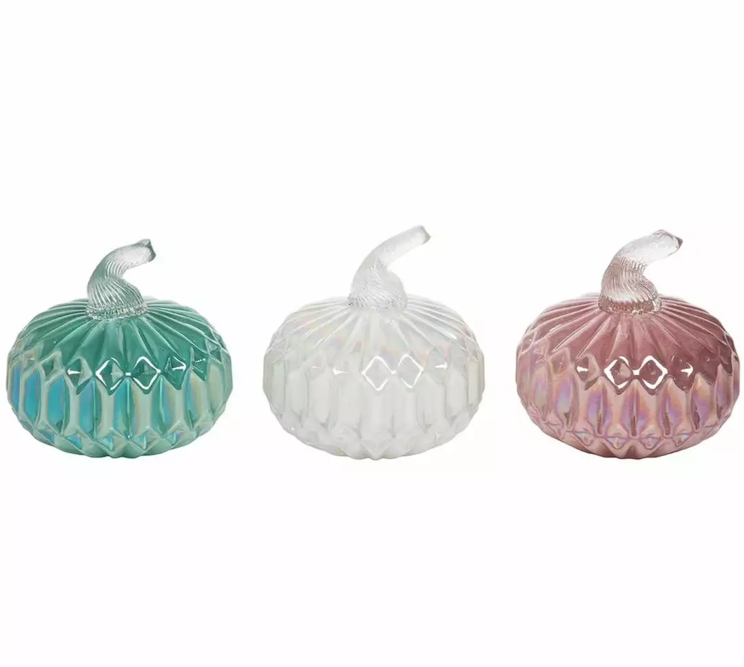 - Set of 3 – assorted glass pumpkins