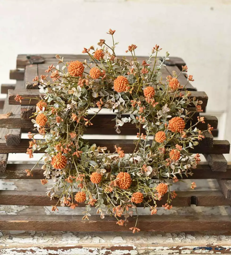 Make your home beautiful this harvest season with this lovely pumpkin orange candle ring/wreath with its realistic-looking faux flowers you’ll enjoy year after year.