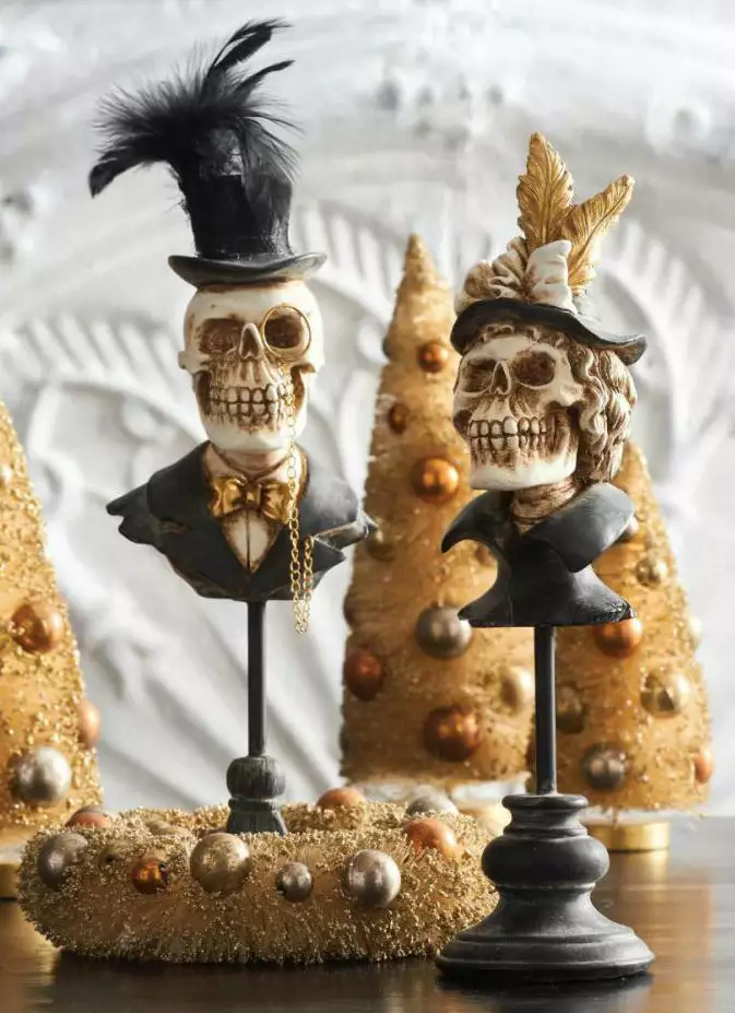 Your Halloween decor will be dreadfully divine with these dressed-up Lord & Lady Skeleton busts.