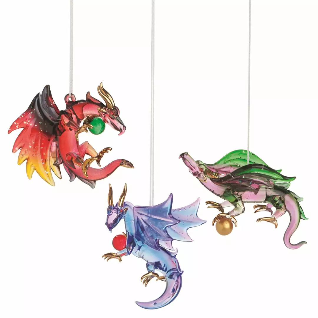 - Set of 3 – assorted dragon ornaments