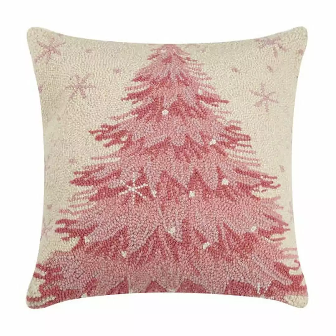Make your home cozy this holiday season with this stylish Pink Christmas Tree Hooked Pillow.