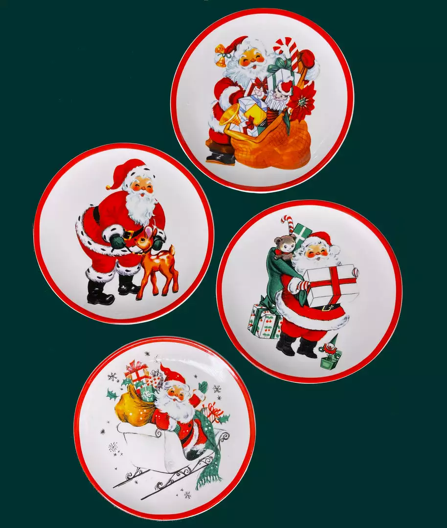 Make your home jolly this Christmas holiday with these small festive Retro Santa Claus Plates.