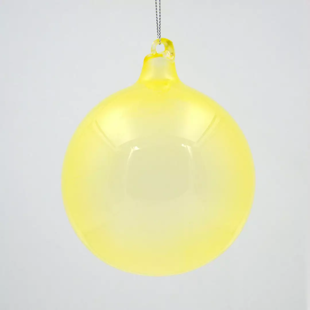Personalize your holiday decor with these hand-blown Pale Yellow Bubblegum Glass Ball Ornaments by designer Jim Marvin.