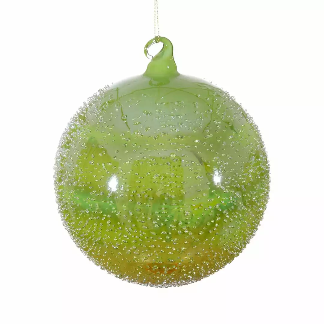 Add interest to your Christmas decorating with these Beaded Green Art Glass Ball Ornaments.